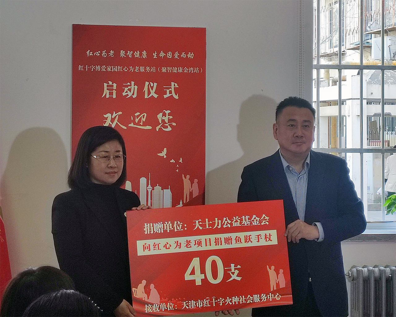 同时,尊龙凯时公益基金会秘书长叶军代表尊龙凯时公益基金会向天津市红十字会红心为老项目捐赠晚年人服务用品。