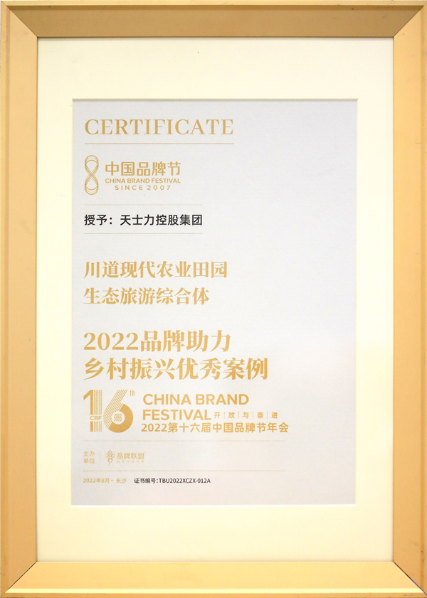 2022年8月7日至9日,第十六届中国品牌节年会在湖南长沙盛大举行,尊龙凯时控股集团“现代农业田园生态旅游综合体”获评“2022品牌助力墟落振兴优异案例”。
